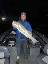 Abraham was looking for a custom rod for his Striper guided fishing trips in Winchester Bay. Together with Johnstone the two came up with a design they are proud of and is very effective. Abraham states the weight of this rod is perfect and very well balanced. The bigger butt is great for casting big swim baits and heavier jigs. The rod has plenty of backbone and just the right amount of tip action making for a fun fish fight. Because its a bass rod they had to make sure it would be strong enough to withstand the fight of a Striper. Abraham has caught 3 - 20lb stripers on it so far and nurmerous in the 10-15 lb range. He was concerned about durablity, he wanted to see if the rod would break with a bigger fish fight but he was pleasantly suprised and impressed.